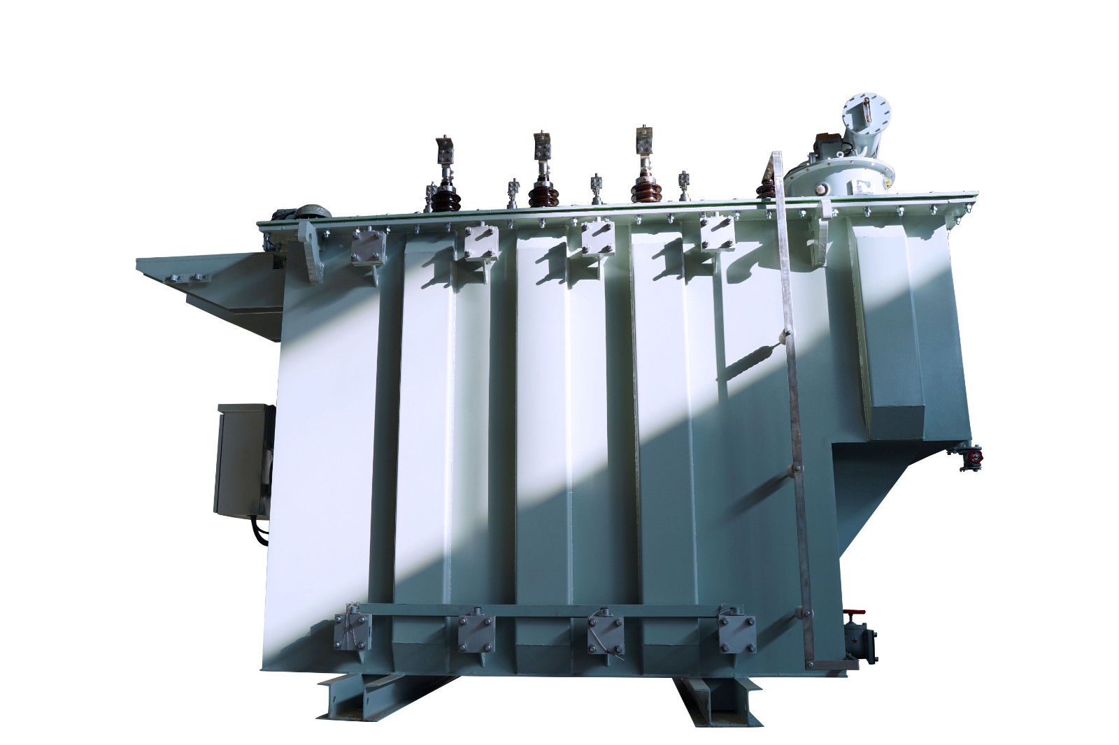 可在一次側借助于有載調壓開關在調壓范圍內調整電壓,以保證輸出電壓的穩(wěn)定性,35KV級6300kVA以上變壓器采用折板油箱,大大加強了油箱機械強度,減少焊縫,提高了外觀質量。